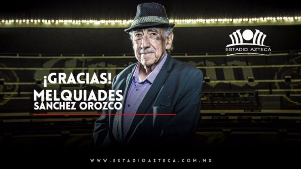 Mañana primer partido del América con Don Melquiades en el cielo...la voz nunca se dejará de escuchar[/caption]Pintor y escritor fueron otras de sus profesiones, pero durante cinco décadas fue el locutor oficial del recinto de Santa Úrsula desde su inauguración en 1966.Sánchez Orozco fue durante años no solo la voz oficial del Estadio Azteca. También formó parte de la histórica radiodifusora XEW y la XEQ durante una gran parte de su carrera.Nuestro colaborador Jonatan Peña reveló a través de sus redes sociales que el día de mañana el club América le rendirá un pequeño homenaje a Don Melquiades Sánchez Orozco, la directiva americanista prepara un vídeo especial a la recordada " Voz del Estadio Azteca".Esperen video especial de Don Melquiades ? https://t.co/p2tc6WSzZb